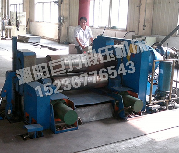 2、三個工作輥均為主動輥,上輥升降和兩下輥平移均由NC控制,確保對任何厚度的板材有良好的送進(jìn)卷制功能,且板材始終處于夾緊狀態(tài),避免板材滑動、跑偏;